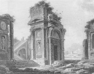 Two Women Before A Hillside Castle