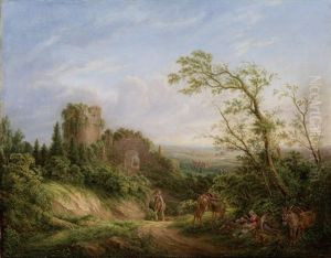 Sudliche Landschaft Mit Einem Wandernden Kunstler Vor Antiken Ruinen