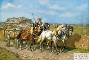 Bauern Beladen Einen Von Zwei Schimmeln Gezogenen Heuwagen
