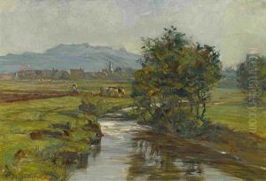 Ein Bauer Durchquert Mit Seinem Vierergespann Eine Furt