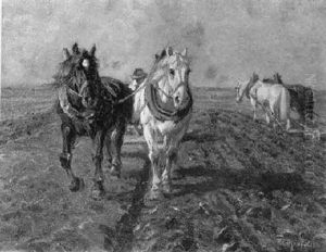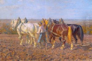 Ein Bauer Fuhrt Seine Pferdegespanne Uber Einen Acker