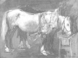 Bauer Mit Einem Schimmelgespann Beim Pflugen