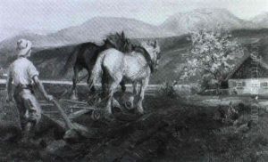 Pferdegespann Mit Pflug In Der Warmen Fruhlingssonne