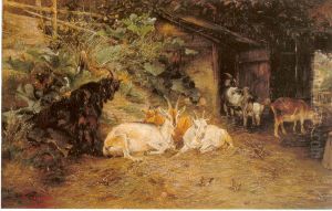 Ziegen Und Schafe In Einer Weiten Wiesenlandschaft