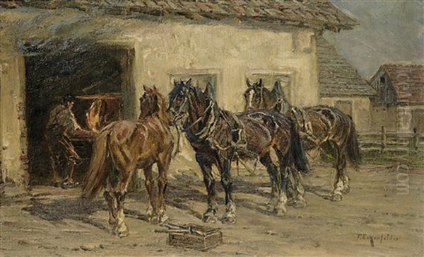 Bring the timeless beauty of Friedrich Eckenfelder's Pferde Vor Der Schmiede into your home with a handmade oil painting reproduction. Carefully recreated on canvas by skilled artists using traditional techniques, this piece captures the delicate brushwork, subtle light, and vibrant color of the original masterpiece. With museum-level quality and rich texture, it brings elegance and artistic depth to any space. Enjoy free shipping and make this masterpiece a part of your personal collection.