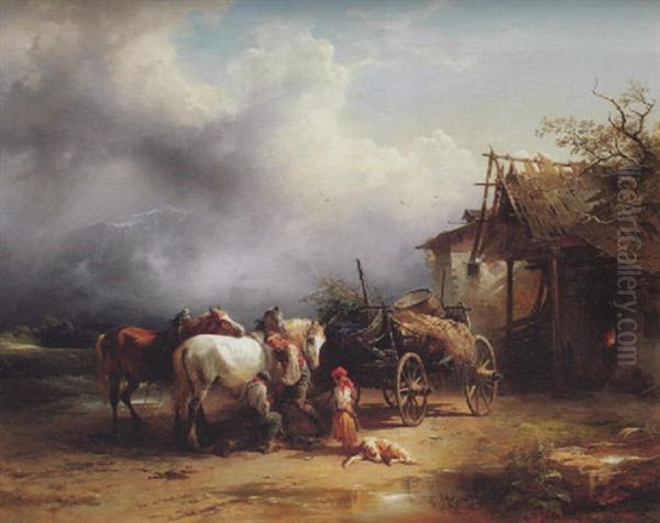 Bring the timeless beauty of Friedrich Gauermann's Beim Hufschmied into your home with a handmade oil painting reproduction. Carefully recreated on canvas by skilled artists using traditional techniques, this piece captures the delicate brushwork, subtle light, and vibrant color of the original masterpiece. With museum-level quality and rich texture, it brings elegance and artistic depth to any space. Enjoy free shipping and make this masterpiece a part of your personal collection.