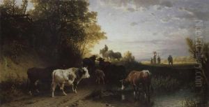 Vieh Vor Einer Wasserstelle (the Watering Hole)