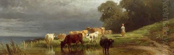Bring the timeless beauty of Friedrich Johann Voltz's Cows At The River into your home with a handmade oil painting reproduction. Carefully recreated on canvas by skilled artists using traditional techniques, this piece captures the delicate brushwork, subtle light, and vibrant color of the original masterpiece. With museum-level quality and rich texture, it brings elegance and artistic depth to any space. Enjoy free shipping and make this masterpiece a part of your personal collection.