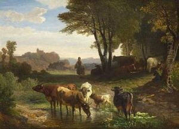 Bring the timeless beauty of Friedrich Johann Voltz's Hirtenfamilie Mit Kuhen Am Wasser. into your home with a handmade oil painting reproduction. Carefully recreated on canvas by skilled artists using traditional techniques, this piece captures the delicate brushwork, subtle light, and vibrant color of the original masterpiece. With museum-level quality and rich texture, it brings elegance and artistic depth to any space. Enjoy free shipping and make this masterpiece a part of your personal collection.