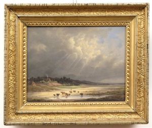 Kuhe An Der Tranke. Oil Painting by Friedrich Johann Voltz