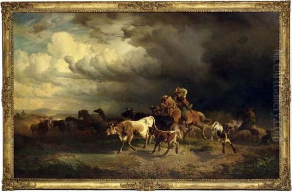 Rising Storm - Herdsmen With Their Herd Fleeing Before The Storm