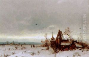 Winterabend Oil Painting by Friedrich Josef Nicolai Heydendahl