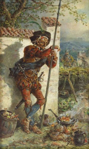 Landsknecht, An Eine Mauer Gelehnt, Sich Ein Essen Bereitend