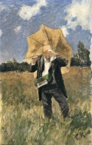 Weite Landschaft Mit Windmuhle Unter Bewolktem Himmel