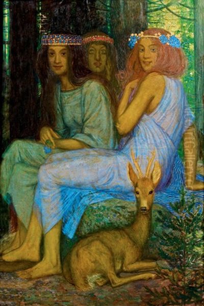 Drei Nymphen Mit Rehbock Oil Painting by Friedrich Koenig
