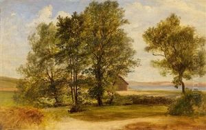 Landschaft Mit Einem See Und Einer Fischerhutte