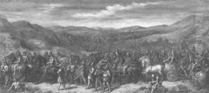 Zug Eines Antiken Heeres In Hugeliger Landschaft