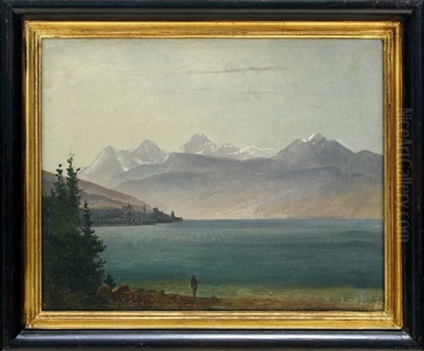 Schweizer Gebirgssee Mit Einem Angler, Wohl Thuner See