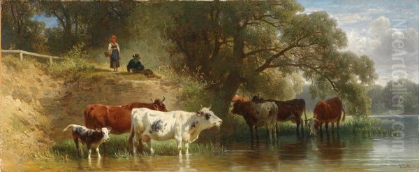 Bring the timeless beauty of Friedrich Voltz's Weidende Kuhe am Fluss mit Hirten into your home with a handmade oil painting reproduction. Carefully recreated on canvas by skilled artists using traditional techniques, this piece captures the delicate brushwork, subtle light, and vibrant color of the original masterpiece. With museum-level quality and rich texture, it brings elegance and artistic depth to any space. Enjoy free shipping and make this masterpiece a part of your personal collection.