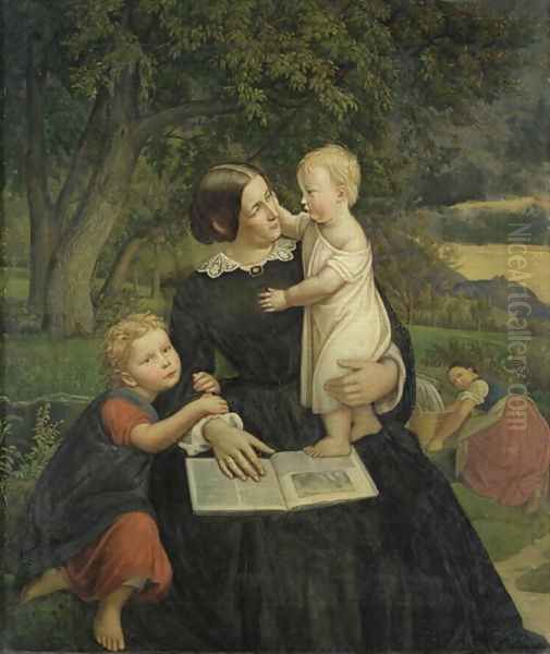 Emilie Marie Wasmann, the artists wife, with Elise and Erich, their oldest children, 1860