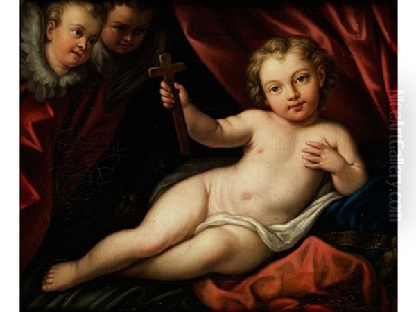 Jesuskind Mit Kreuz Und Zwei Geflugelten Engelskopfen