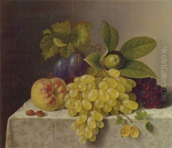 A Still Life With Grapes, Plums, A Lime And A Peach