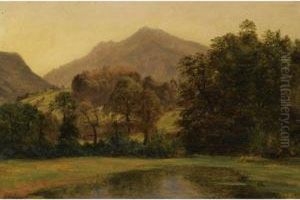 A Mountainous Landscape With Pond And Figures