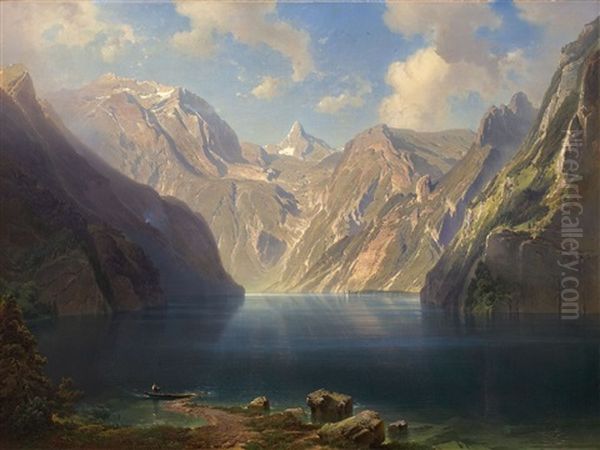 Bring the timeless beauty of Fritz Bamberger's Der Konigssee Mit St. Bartholoma into your home with a handmade oil painting reproduction. Carefully recreated on canvas by skilled artists using traditional techniques, this piece captures the delicate brushwork, subtle light, and vibrant color of the original masterpiece. With museum-level quality and rich texture, it brings elegance and artistic depth to any space. Enjoy free shipping and make this masterpiece a part of your personal collection.