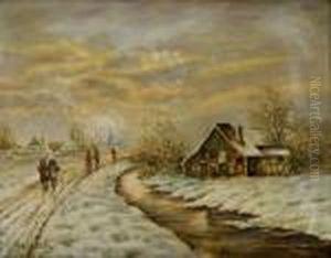 Wintry Landscape With A Brook In The Foreground. Oil/canvas, Signed , Inscribed "bettelbach" Und Datiert "1919"