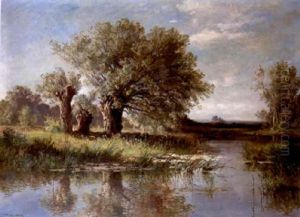 Weidelandschaft Mit Kuhen Unter Kopfweiden