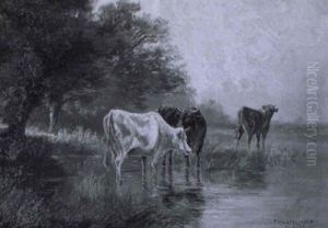 Kuhe An Der Tranke An Einem Stillen Weiher