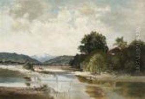 "winterabend An Der Amper". Sign. Und Bez. Munchen, Rucks. Betitelt. Ol Auf Lwd. 65,5 X 95 Cm