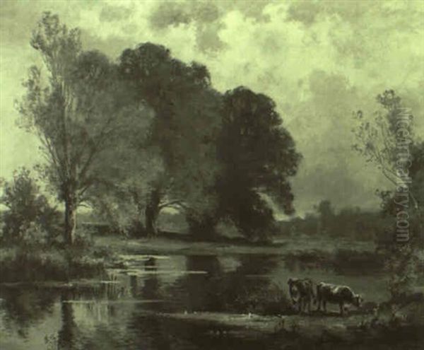 Kuhe Am Wasser Oil Painting by Fritz Halberg-Krauss