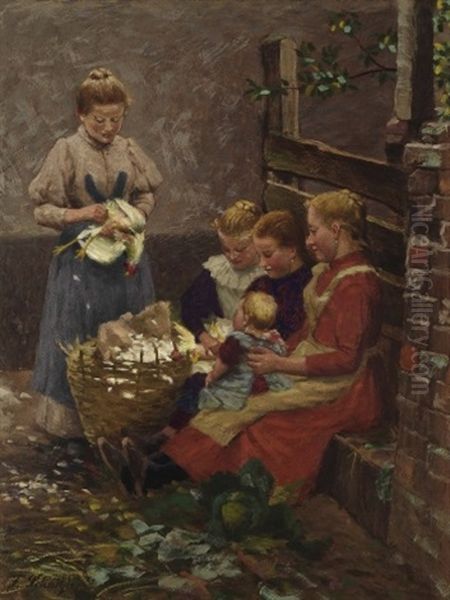 Bring the timeless beauty of Fritz Schnitzler's Beim Federn Rupfen into your home with a handmade oil painting reproduction. Carefully recreated on canvas by skilled artists using traditional techniques, this piece captures the delicate brushwork, subtle light, and vibrant color of the original masterpiece. With museum-level quality and rich texture, it brings elegance and artistic depth to any space. Enjoy free shipping and make this masterpiece a part of your personal collection.