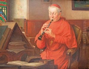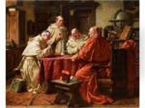 Kardinal Mit Drei Monchen In Einer Klosterbibliothek