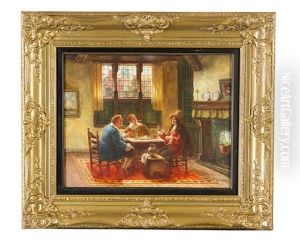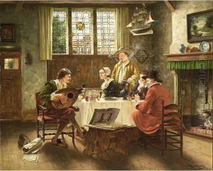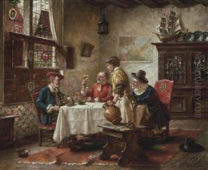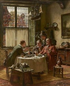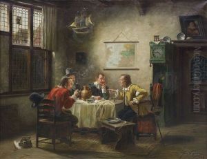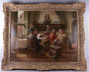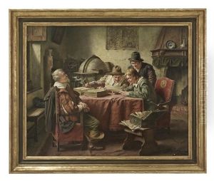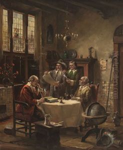 Herrenrunde In Hollandischer Stube Beim Kartenstudium.