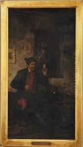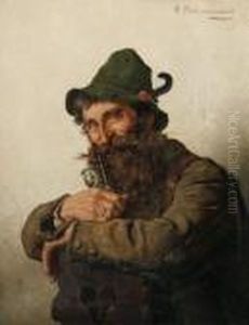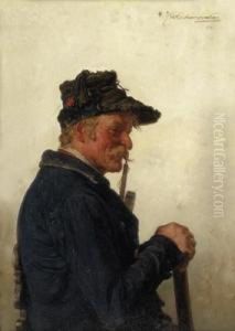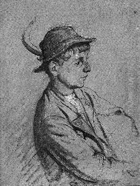 "bauernbub". Monogr. G. Hk. Und Dat. 94. Olskizze Auf Lwd. Auf Holz. 23,5 X 31 Cm. Rahmen