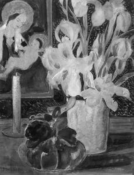 Toni "stillleben Mit Blumen, Kerze Und Madonnenbild". Aquarell, Tlw. Mit Weis Abgemischt. Sign. Ba: 44 X 34 Cm. Rahmen