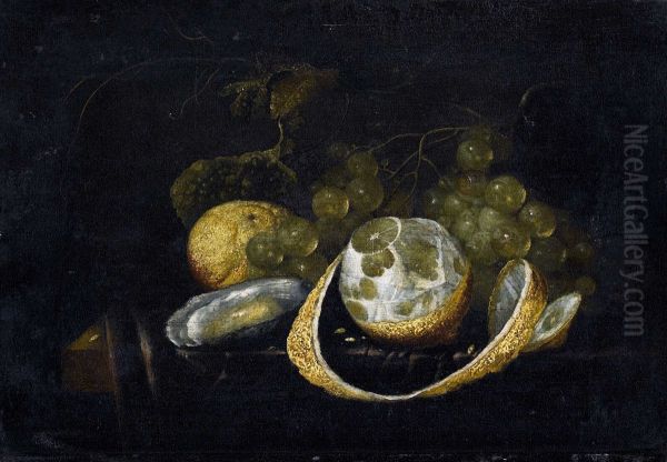 Still life with grapes, lemons and oyster