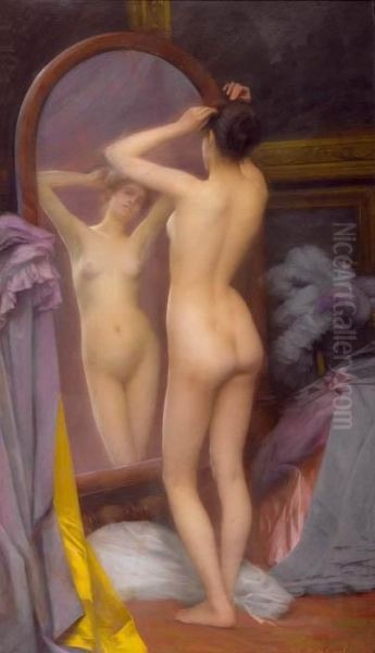 Woman Standing Before A Mirror.