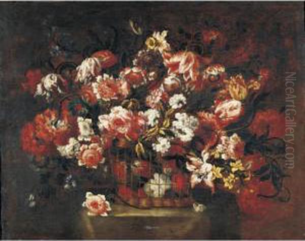 Still Life Of Flowers In A Basket