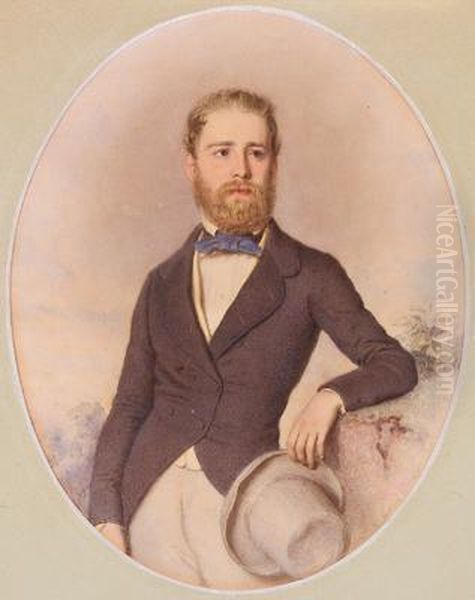 Bildnis Eines Blonden Jungen Herrn In Tailliertem Rock Und Zylinder