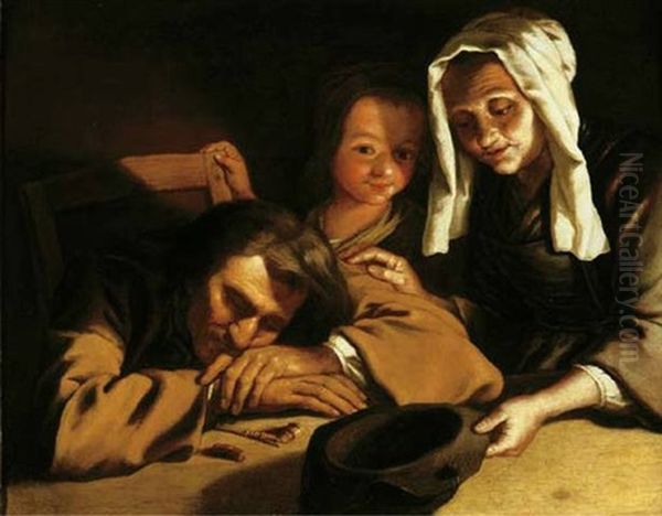 A Candlelit Interior With Figures Around A Table