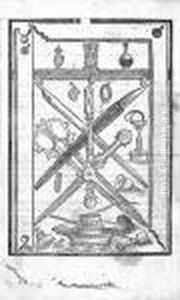 Trompe L'oeil With An Engraving, Pocket Watch, Quill Pen, Pochette, And Letter Holder