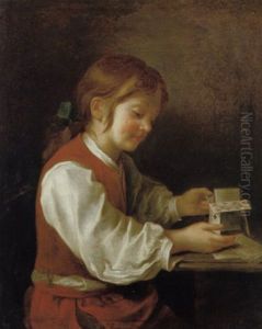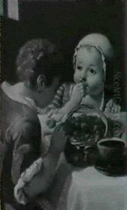 A Peasant Boy, Holding A Hat Full Of Fruit