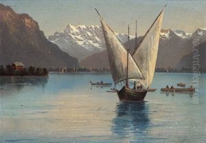 A Herd Of Goats By A Lake, Switzerland