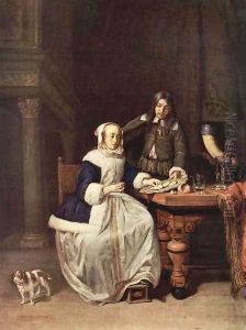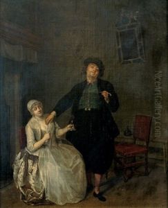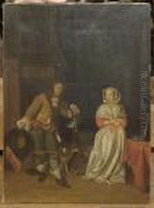 An Officer Paying Court To A Young Woman In An Interior
