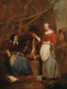 Dutch Interior With A Maid Holding A Ewer And Basin For A Lady Rinsing Her Hands