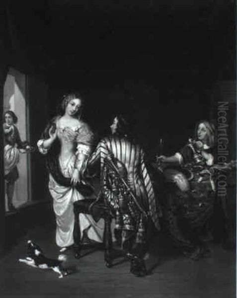 A Tavern Interior With A Lady Leaving Table
