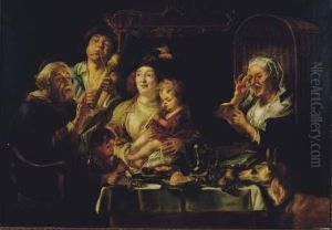 As The Old Sang, So The Young Pipe Oil Painting - Gabriel Metsu